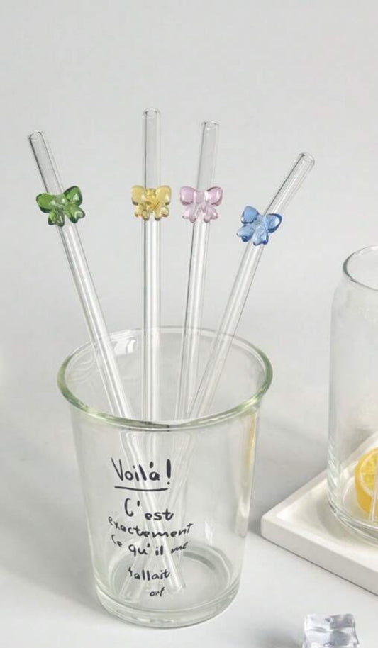 Set Of Four Butterfly Straws with Brush
