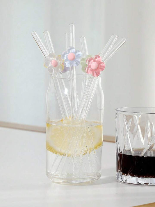 Cute Floral (Flower) Glass Drinking Straws Set