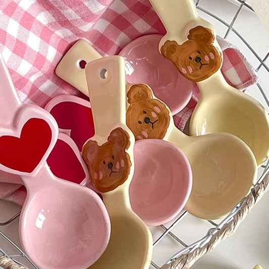 Cute Ceramic Soup Heart Small Spoons Set of 2